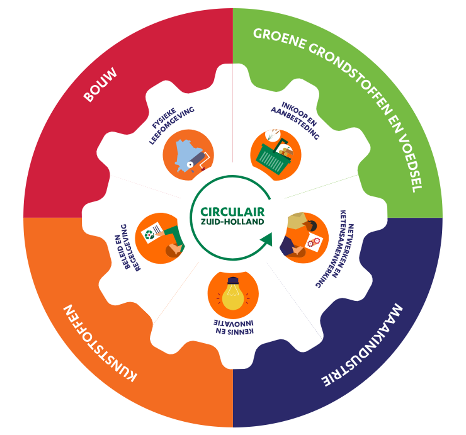 As a province, we focus on four themes: Construction, Green Raw Materials and Food, Manufacturing and Plastics. The province of South-Holland fulfils the role of client, connector and booster within these themes, also known as transition themes.