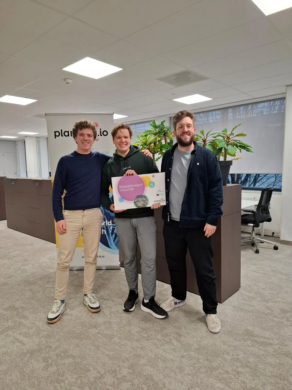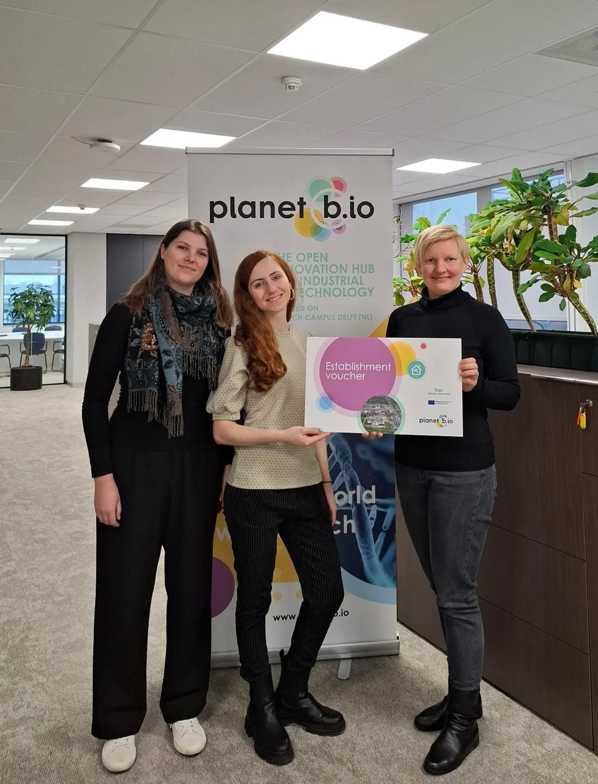 Roylinx is a TU Delft spin-off developing 100% bio-based, recyclable materials made from agricultural and lignocellulosic waste, designed for applications such as construction, urban design, and sustainable packaging. With support from both a Kansen voor West advisory voucher and an establishment voucher, Roylinx is strengthening its foundations at Planet B.io while advancing pilot-scale development and market validation. This support enables the team to accelerate the transition from laboratory innovation to real-world applications, contributing to circular, low-energy alternatives to fossil-based plastics.